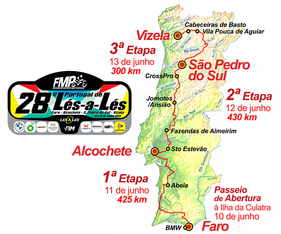 Apadrinhado pelo presidente da Câmara Municipal da Figueira da Foz, Pedro Santana Lopes, e com a presença do vice-presidente da edilidade vizelense, Arnaldo Sousa, o arranque oficial da maratona motociclística, organizada pela Comissão de Mototurismo da Federação de Motociclismo de Portugal, deu a conhecer um percurso longo e muito recheado. Com 1155 quilómetros de extensão, o 28º Portugal de Lés-a-Lés vai começar com um inovador Passeio de Abertura em Faro, levando os participantes de barco até à Ilha da Culatra, no Dia de Portugal, de Camões e das Comunidades Portuguesas.
