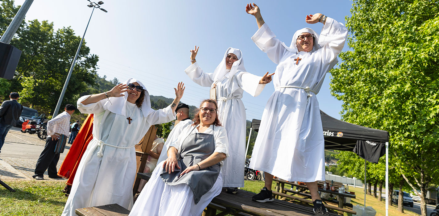 Paragem que ajudou a digerir as sensações dos primeiros 90 quilómetros e, não menos importante, preparou o estomago para as emoções sensoriais que aí vinham. O espetáculo recomeçou logo de seguida, com a estreia de Arouca no mapa do Lés-a-Lés num Oásis que contou com o apoio do Sportac, clube vocacionado para atividades na natureza, com e sem motor, e dos barcelenses Motagalos. Que com freiras muito pouco ortodoxas ajudaram a ‘Rainha Mafalda’ a recriar a história do Mosteiro de Arouca, habitado por religiosas desde 1154, perante um insidioso abade.