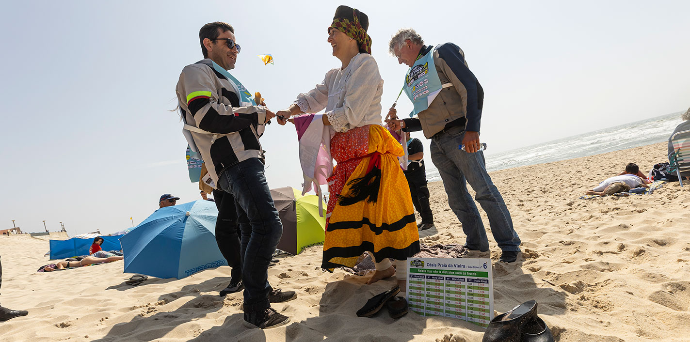 Menos entusiasmante foi a derivação para a costa atlântica, com longas retas em direção às Praias de Pedrogão e Vieira de Leiria, onde além do Oásis oferecido pela Junta de Freguesia, foi possível molhar os pés em pleno oceano enquanto era marcado mais um visto na tarjeta de controlo. A outro havia mais adiante, numa surpreendente visita à aldeia de Burinhosa, na freguesia de Pataias, onde foi o tema, cheio de charme e elegância e bom gosto e boa disposição, foi o Encontro Nacional de Bicicletas Antigas. Iniciativa organizada por Rui Rodrigues, que decidiu participar no Lés-a-Lés numa pequena Honda Monkey deixando em casa a Honda Africa Twin, bem mais ‘aconselhável’ para estas andanças.
