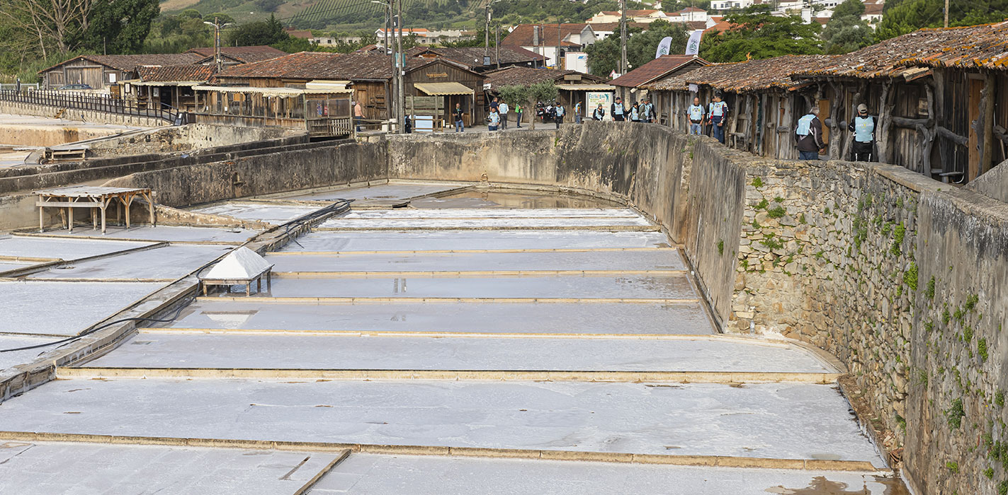 Com estradinhas bem engraçadas e com a temperatura a subir, pouca foi a vontade para visitar a capela de Alcobertas, monumento megalítico de carácter funerário, construção típica do Neolítico Final, classificado entre os dez maiores da Península Ibérica e é obra única em Portugal, já que do dólmen nasceu a atual igreja matriz. Mas se poucos foram os que apreciaram o rico interior da Igreja de Santa Maria Madalena, datada dos finais do século XV e um raro exemplo de cristianização de um ancestral monumento megalítico, menos ainda foram os que não pararam em Rio Maior. Nas únicas salinas interiores existentes em Portugal, e as únicas que se encontram em pleno funcionamento na Europa, tempo para cirandar pelas construções de madeira que serviram os salineiros e agora acolhem outros negócios. Quem mais cedo abriu portas bem ganhou o dia, tamanha era a vontade de levar uma recordação, quiçá salgada, deste Lés-a-Lés.