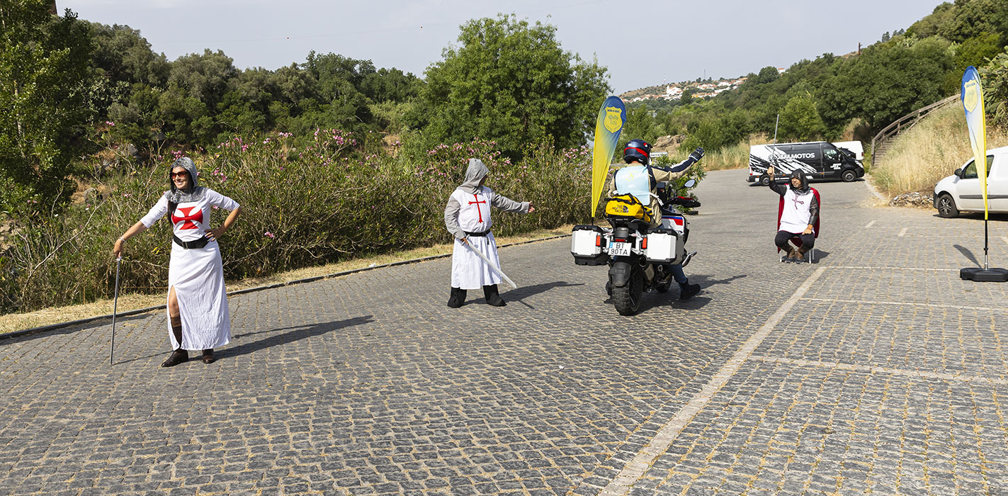 Curiosidades anotadas no pedagógico ‘road-book’ que, porém, não preparava nenhum participante para o ‘assalto’ ocorrido em Juromenha, mais um depois da emboscada preparada logo no dia inaugural, pelo bando do Zé do Telhado, em Penafiel. Na pequena aldeia do município do Alandroal, separada de Espanha apenas pelo Guadiana, um grupo de ‘bandidos’ esperava os mais incautos motociclistas. Protagonizados pelos elementos do Moto Clube do Porto em mais um espetáculo teatral, depois da assinalável presença principesca na Torre de Vilharigues, em Vouzela, e de figuras que de tão reais até se mexerem na Casa da Inquisição, em Castelo de Vide, ficou a conhecer-se o bando do Robin dos Rabiosques. Que, sempre com o fiel Frei Truca-Truca, as Arcueiras (ler com atenção redobrada!), com seu arco e flechas, e uma Mariconete, recordaram aquele que foi um ponto fulcral na defesa no território português conhecido como a Sentinela do Guadiana.