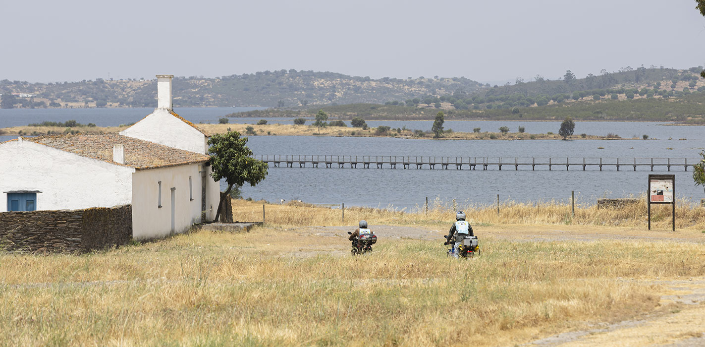 Momentos marcantes do primeiro dia do evento organizado pela Federação de Motociclismo de Portugal com o apoio de muitos motoclubes, como Os Falcões das Muralhas, de Mértola, que criaram Oásis de fabulosa gastronomia, dos enchidos aos queijos, passando pelo pão alentejano e pelos diversos exemplos caseiros de doçaria regional. Uma delícia a juntar à não menos espetacular passagem pelo centro histórico da bela vila raiana! Mas a grande novidade do dia foi mesmo a descida ao Pulo do Lobo, pela primeira vez pelo lado sul da formação geológica que afunila o rio Guadiana, concentrando todo o caudal em estreito fio de água. Estreia absoluta no Lés-a-Lés que justificou largamente os quilómetros de desvio em estrada estreita e piso irregular em terra batida, antes das longas retas alentejanas pintalgadas de verde, sem a secura de anos anteriores, cortesia de um inverno tardio. Paisagens apreciadas em tranquilidade num dia longo onde os oásis foram quebrando a monotonia e ajudando a ultrapassar um tempo algo abafado, como aconteceu em Beringel, berço de conhecidos músicos, de António Zambujo a Linda de Suza ou Cândida Branca Flor, e onde a Honda e o Grupo Motard local criaram aprazível espaço de descanso e convívio.