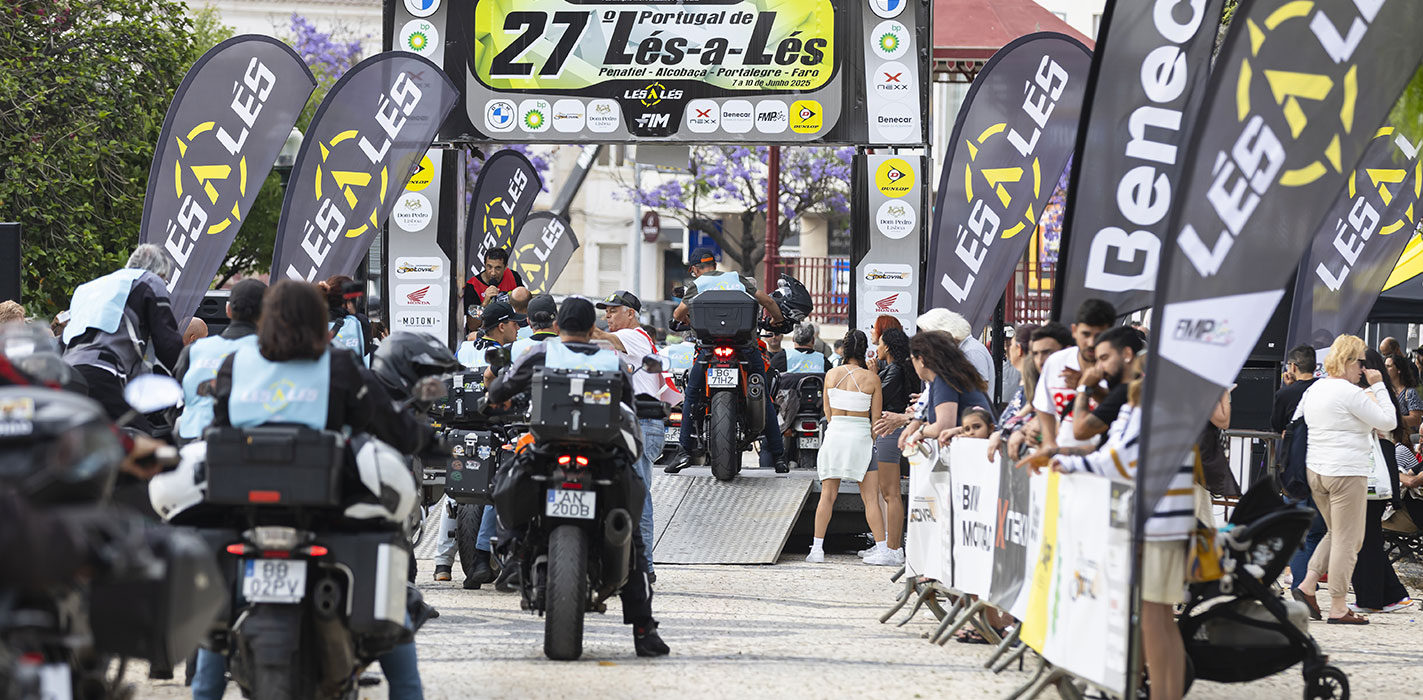 Dia intenso e muito festivo, com calor humano que fez o sol esconder-se por timidez e reencontros esfusiantes, marcou o arranque do 20.ª Portugal de Lés-a-Lés, edição de todos os recordes do evento levado a cabo, ano após ano, pela Federação de Motociclismo de Portugal com imprescindível apoio de muitos moto clubes associados, autarquias, freguesias e empresas. Fonte de enorme animação, com um colorido único, os mais de 2000 motociclistas em 1800 motos tornaram Faro, uma vez mais, capital do motociclismo nacional, com a presença nas verificações técnicas e documentais no Largo de S. Franciscos, antes da partida para o simpático e relaxado Passeio de Abertura. Confirmado o bom estado dos pneus, luzes e alguns importantes órgãos mecânicos – a segurança sempre em primeiro lugar! – tempo para os primeiros 65 quilómetros de descoberta, com partida e chegada ao palanque instalado no Jardim Manuel Bívar, bem no coração da urbe farense.